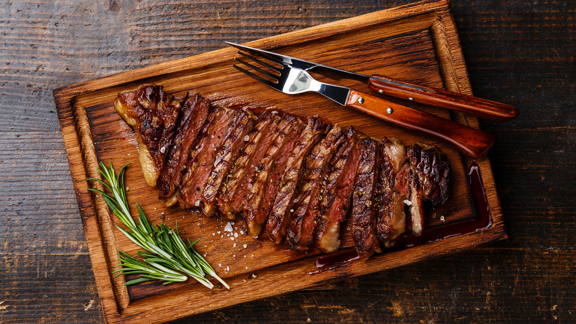 Lomo vetado servido con pastelera de choclo y ensalada chilena.